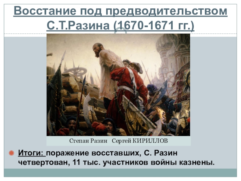 Итоги: поражение восставших, С. Разин