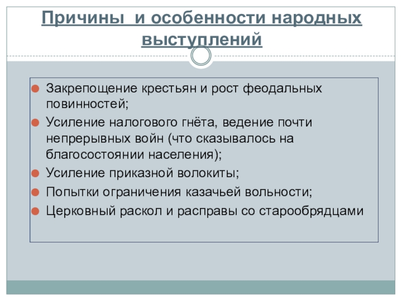 Слайд 5Причины и особенности народных выступлений