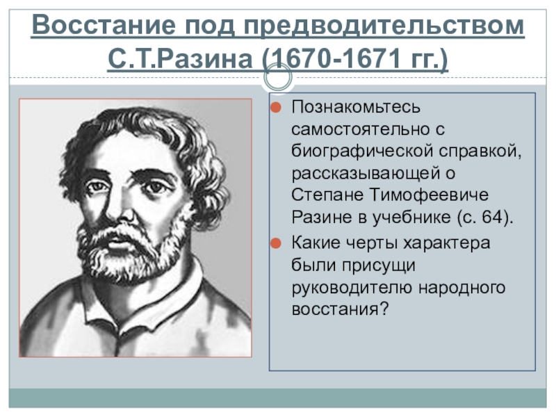 рассказывающей о Степане Тимофеевиче Разине в учебнике (с. 64).
