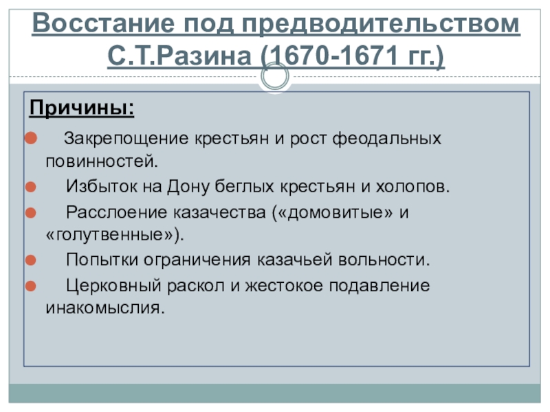 Слайд 13Восстание под предводительством С.Т.Разина (1670-1671 гг.)