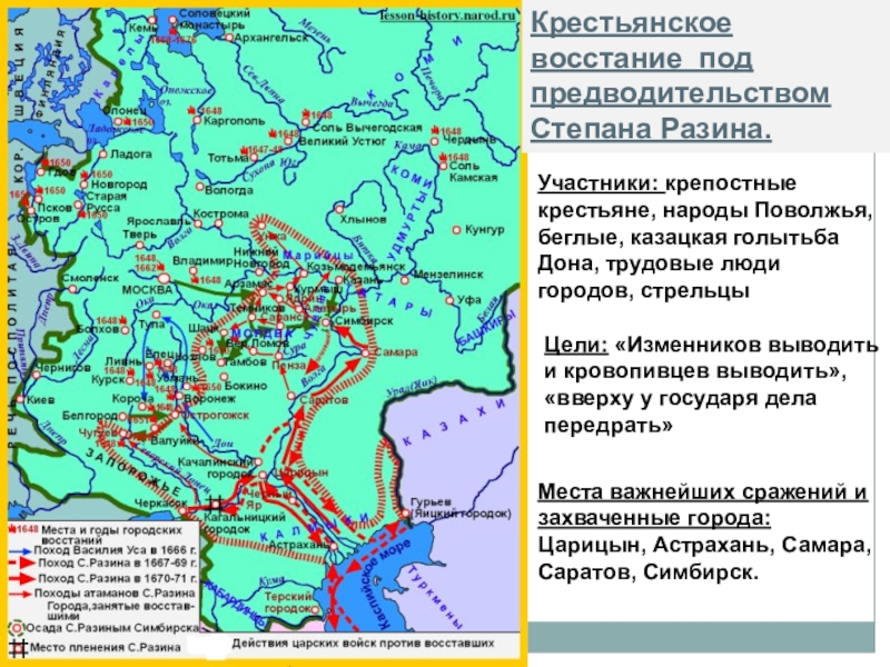 осветить ход событий и роль участников крестьянкой войны С. Разина (1670-1671)