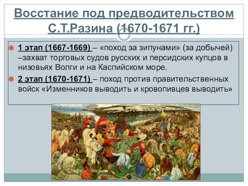 Слайд 15Восстание под предводительством С.Т.Разина (1670-1671 гг.)