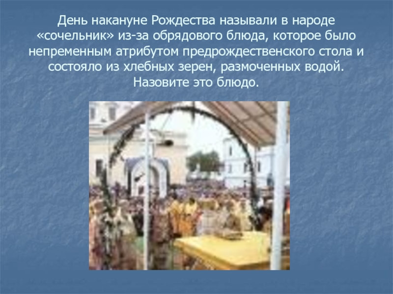 Слайд 5День накануне Рождества называли в народе «сочельник» из-за обрядового блюда,