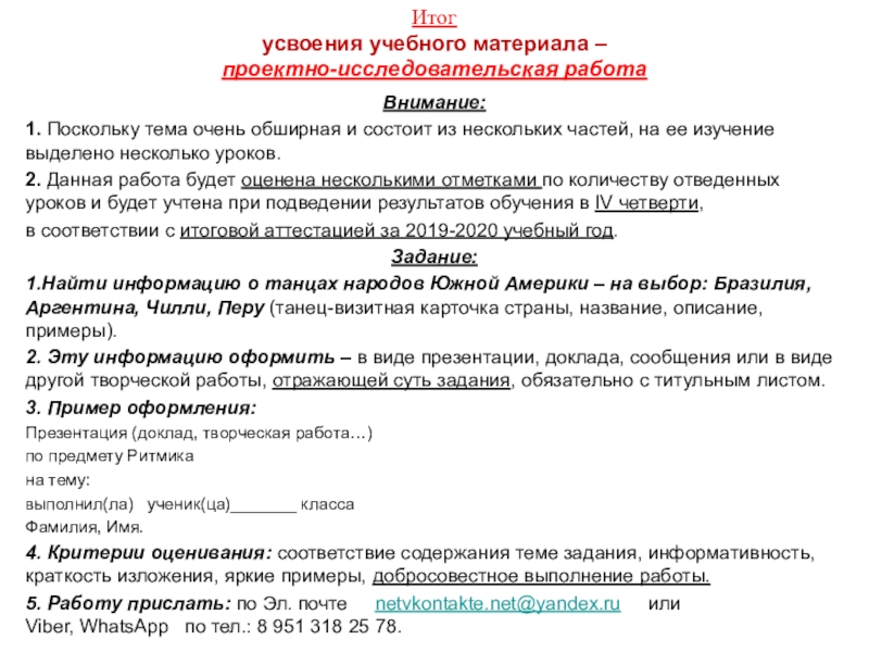 1.Найти информацию о танцах народов Южной Америки – на выбор: Бразилия, Аргентина, Чилли, Перу (танец-визитная карточка страны, название, описание, примеры).