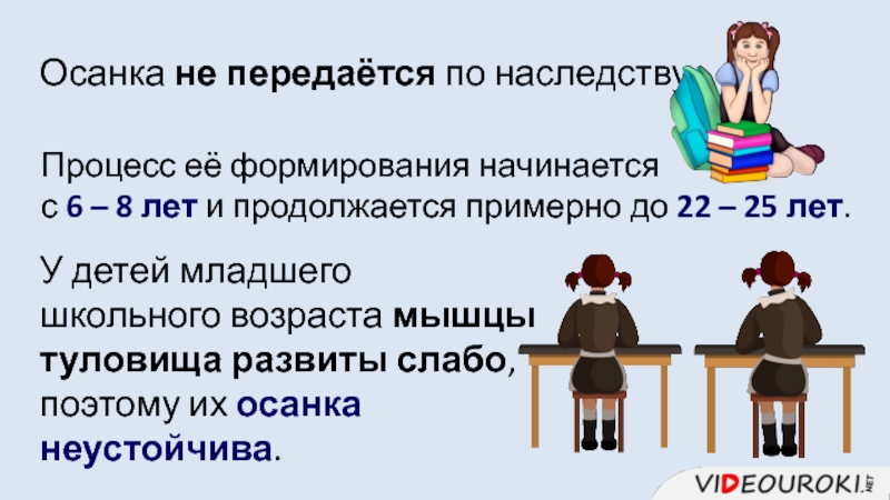 У детей младшего школьного возраста мышцы туловища развиты слабо, поэтому их осанка неустойчива.