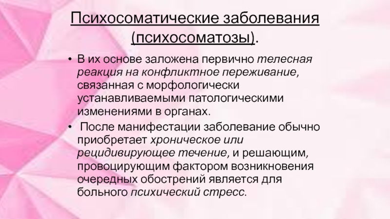 Слайд 95Психосоматические заболевания (психосоматозы).