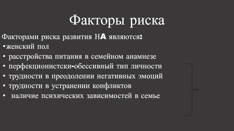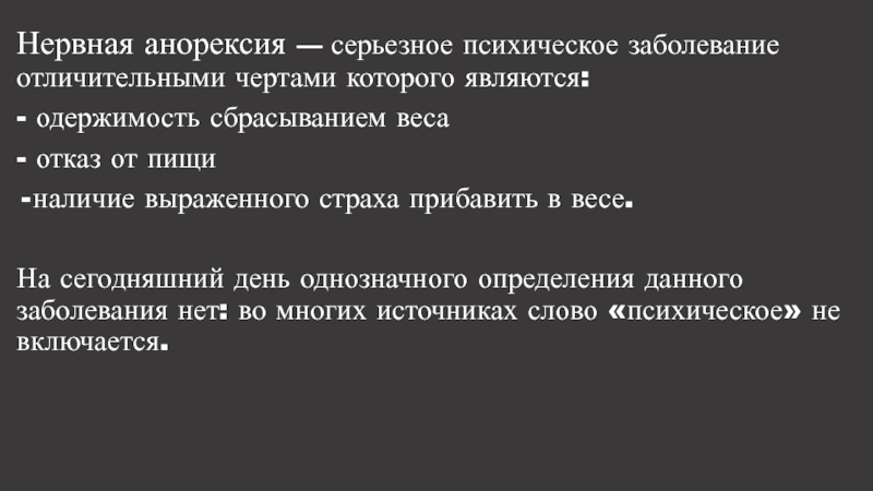 Слайд 3Нервная анорексия — серьезное психическое заболевание отличительными чертами которого являются: