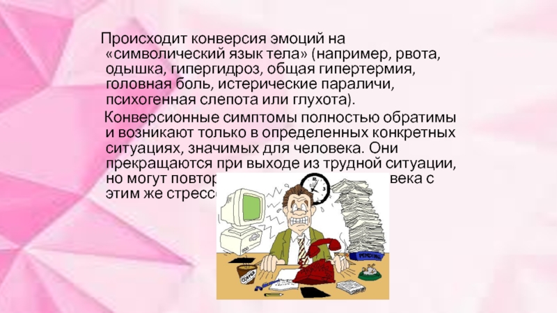Слайд 92 Происходит конверсия эмоций на «символический язык тела» (например,