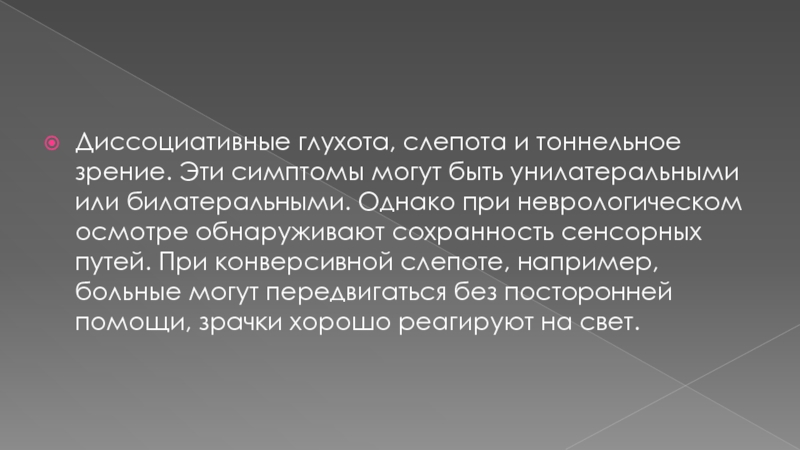 модель» психосоматических расстройств на примере симптомов истерии (истерическая слепота, глухота,