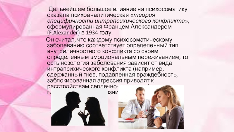 «теория специфичности интрапсихического конфликта», сформулированная Францем Александером (F.Alexander) в 1934