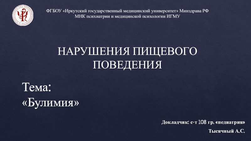 Слайд 1НАРУШЕНИЯ ПИЩЕВОГО ПОВЕДЕНИЯ