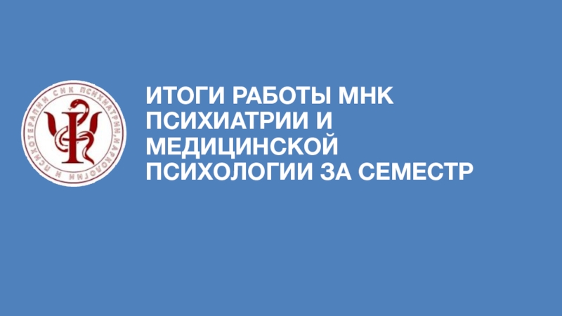 Слайд 99ИТОГИ РАБОТЫ МНК ПСИХИАТРИИ И МЕДИЦИНСКОЙ ПСИХОЛОГИИ ЗА СЕМЕСТР