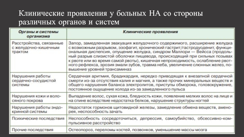 Слайд 12Клинические проявления у больных НА со стороны различных органов и