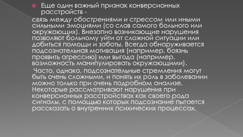 природу (то есть повторяющиеся конверсионные симптомы закрепились и начали проявляться