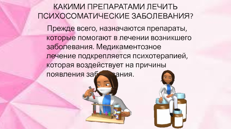 Слайд 96КАКИМИ ПРЕПАРАТАМИ ЛЕЧИТЬ ПСИХОСОМАТИЧЕСКИЕ ЗАБОЛЕВАНИЯ?