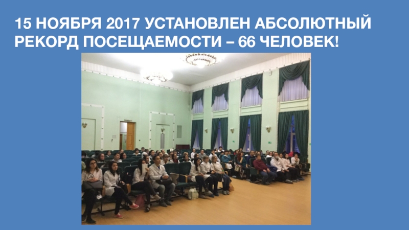 Слайд 10615 ноября 2017 Установлен абсолютный рекорд посещаемости – 66 человек!