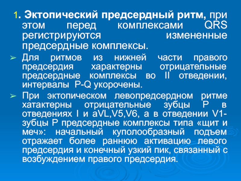 QRS обусловлено расположением или локализацией эктопического очага в предсердиях,