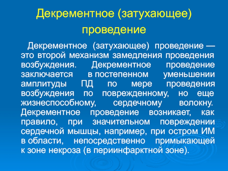 нормальную физиологическую задержку проведения импульса по АВ-соединению. Важно подчеркнуть, что в патологических условиях клетки “быстрого ответа” иногда могут трансформироваться в клетки “медленного ответа”, что приводит к замедлению проведения электрического импульса. Такая ситуация может возникать, например, при острой и хронической ишемии миокарда, остром ИМ и т.п.