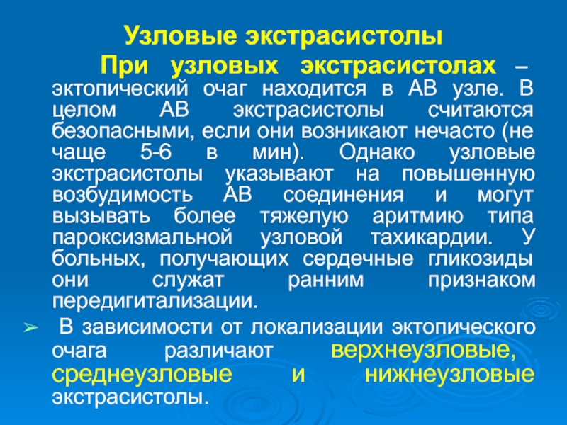– возникшие на фоне приема лекарственных препаратов (мочегонные препараты, сердечные гликозиды, симпатомиметики ).