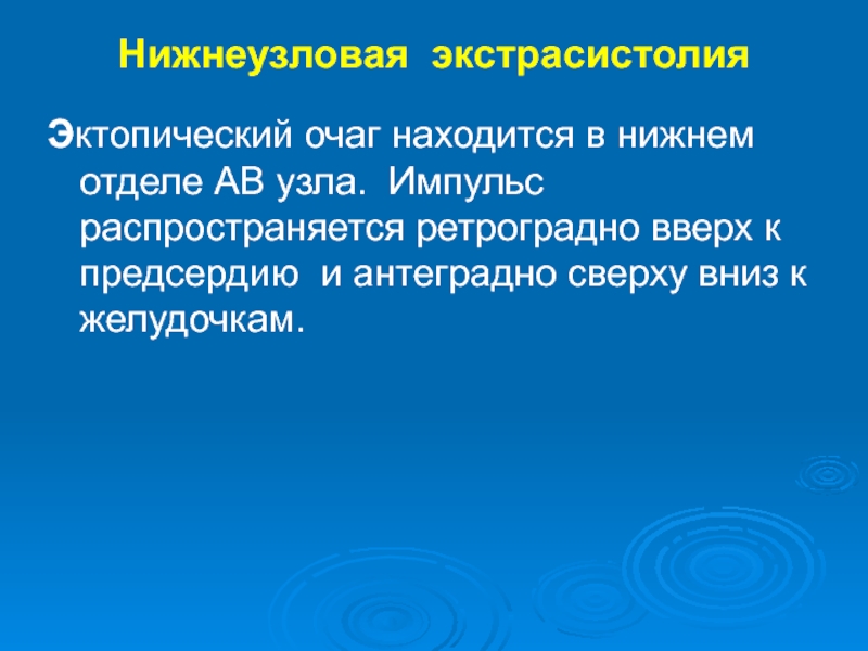 ктопический очаг находится в нижнем отделе АВ узла. Импульс распространяется