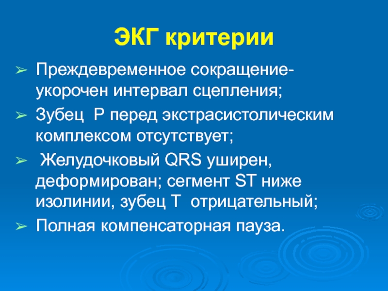 –это означает, что сумма 2-х интервалов R-R до ЭС и после ЭС меньше суммы двух нормальных интервалов R – R.