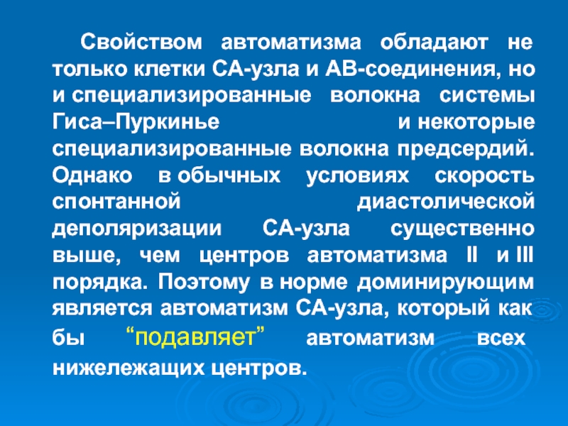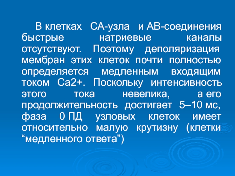 СA-узла и АВ-соединения отличаются низкой скоростью деполяризации во время фазы