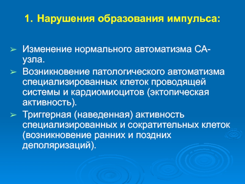 Слайд 2 – это нарушение последовательности, частоты, возникновения и проведения импульсов.