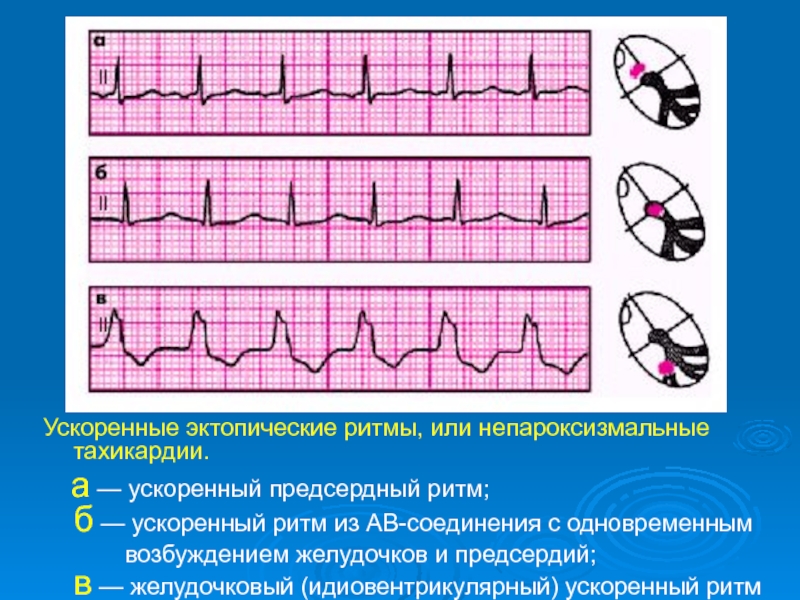 Слайд 50Эктопические (выскальзывающие) ритмы регистрируют:
