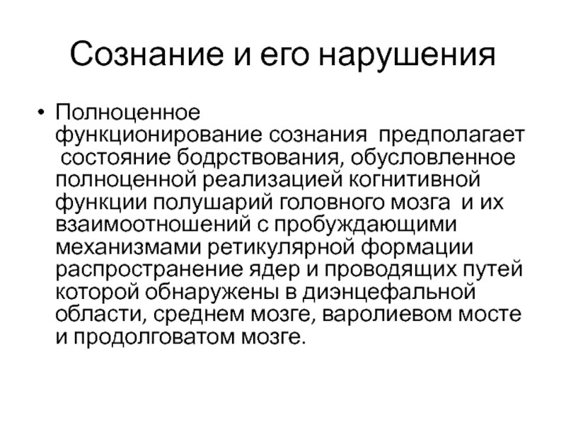 Слайд 2Сознание и его нарушения