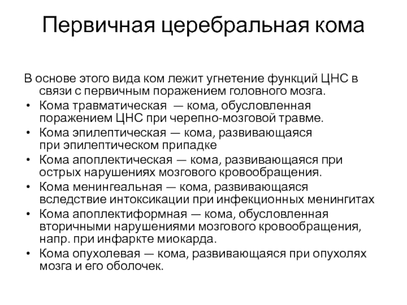 Слайд 17Первичная церебральная кома