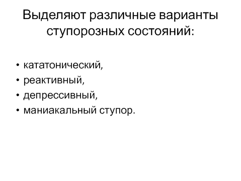 Слайд 12Выделяют различные варианты ступорозных состояний: