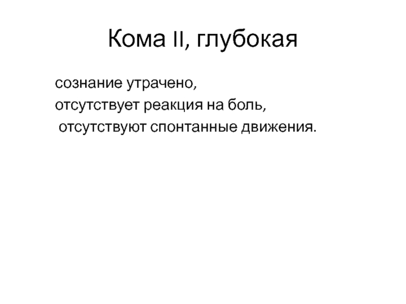 Слайд 20Кома II, глубокая