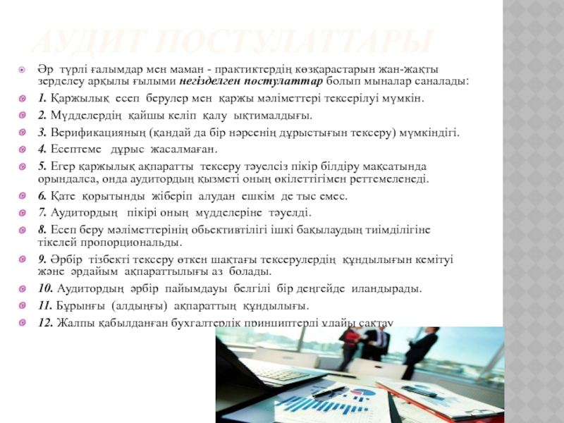 Слайд 7Аудиторлық қызмет аудиттің негізгі қағидаларын сақтау негізінде жүргізіледі: