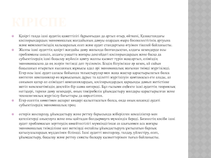 Қазіргі таңда ішкі аудитің қажеттілігі бұрынғыдан да артып отыр, өйткені,