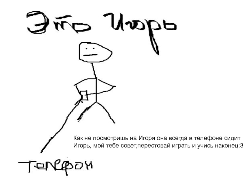 Слайд 25Как не посмотришь на Игоря она всегда в телефоне сидит