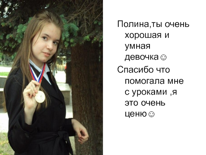 Слайд 6Полина,ты очень хорошая и умная девочка