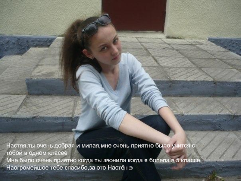 Слайд 19Настяя,ты очень добрая и милая,мне очень приятно было учится с