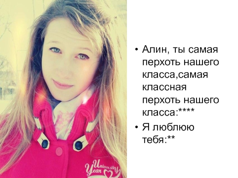 Слайд 28Алин, ты самая перхоть нашего класса,самая классная перхоть нашего класса:****