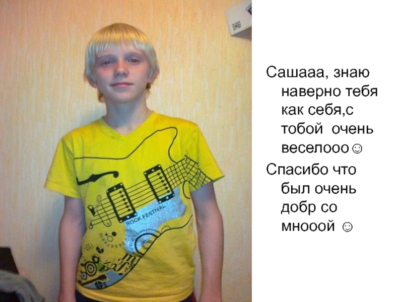Слайд 12Сашааа, знаю наверно тебя как себя,с тобой очень веселооо