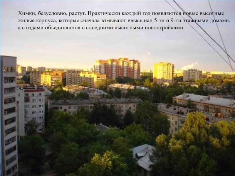 Слайд 10Химки, безусловно, растут. Практически каждый год появляются новые высотные жилые