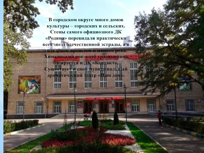 Слайд 15В городском округе много домов культуры – городских и сельских.