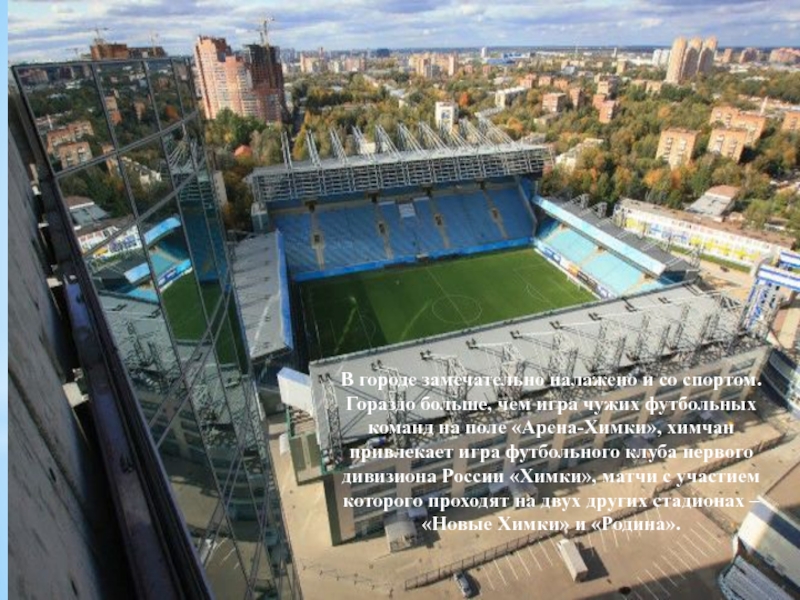футбольного клуба первого дивизиона России «Химки», матчи с участием которого проходят на двух других стадионах – «Новые Химки» и «Родина».