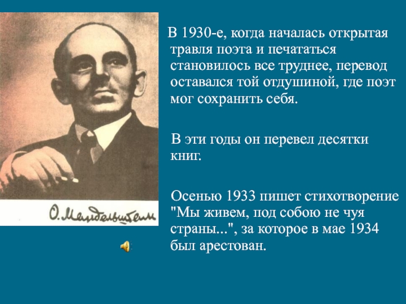 Предвидением собственной судьбы стало переведенное Мандельштамом ещё в 1921 году стихотворение грузинского поэта Н. Мицишвили: