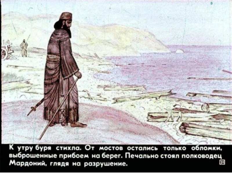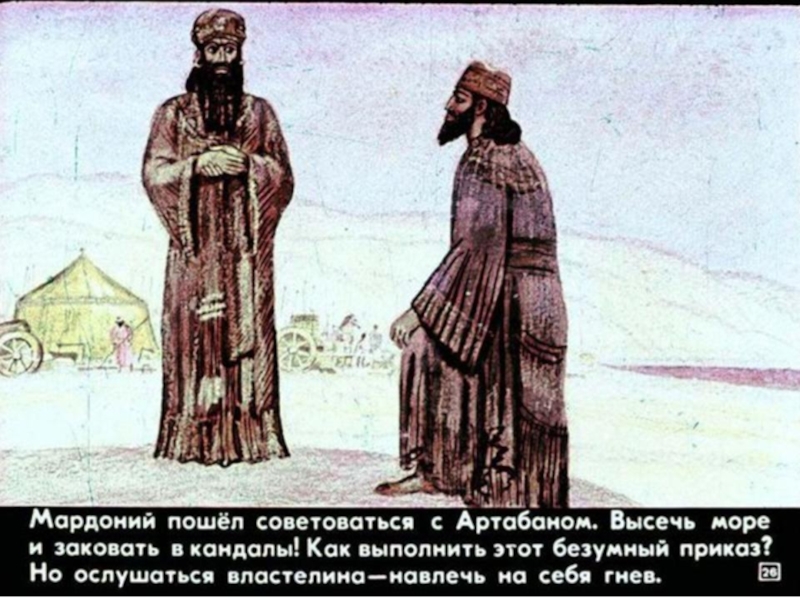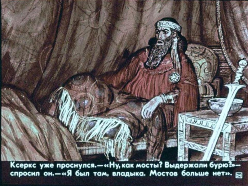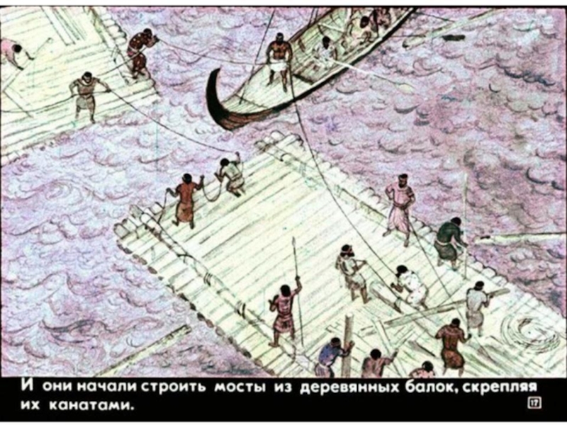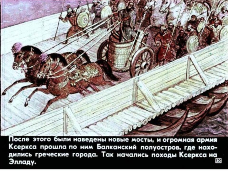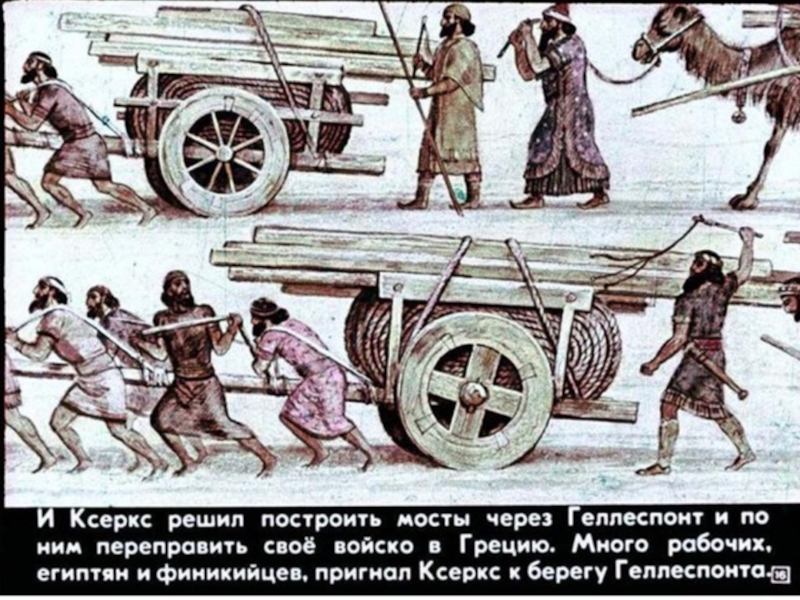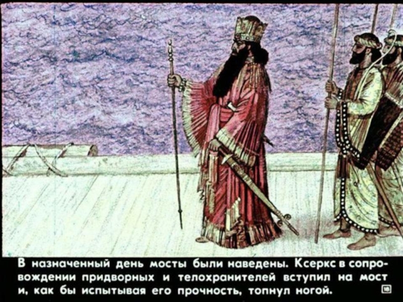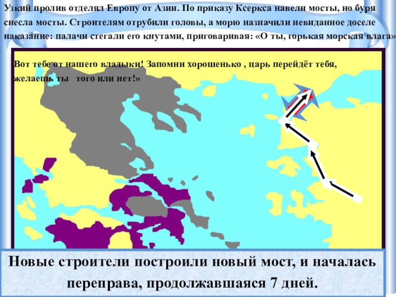 Узкий пролив отделял Европу от Азии. По приказу Ксеркса навели мосты, но буря