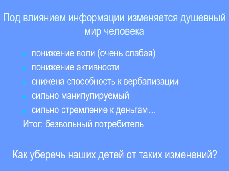 Слайд 12Под влиянием информации изменяется душевный мир человека