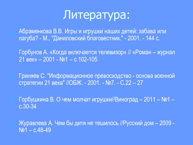 Абраменкова В.В. Игры и игрушки наших детей: забава или пагуба?