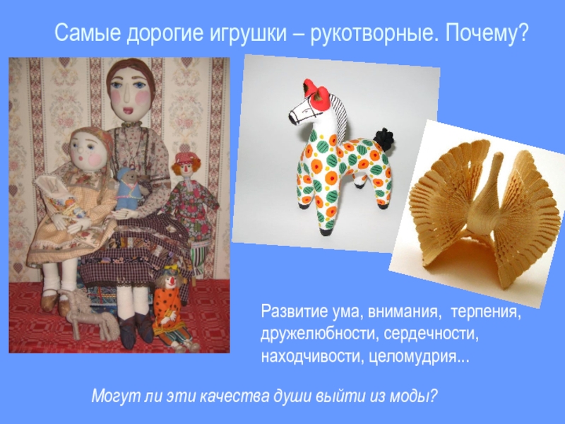 Слайд 23 Самые дорогие игрушки – рукотворные. Почему?