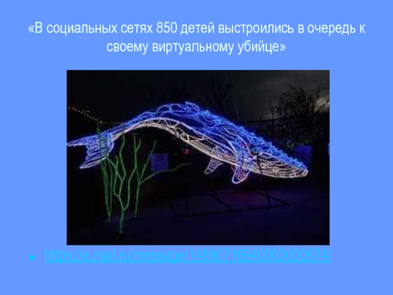 Слайд 68«В социальных сетях 850 детей выстроились в очередь к своему