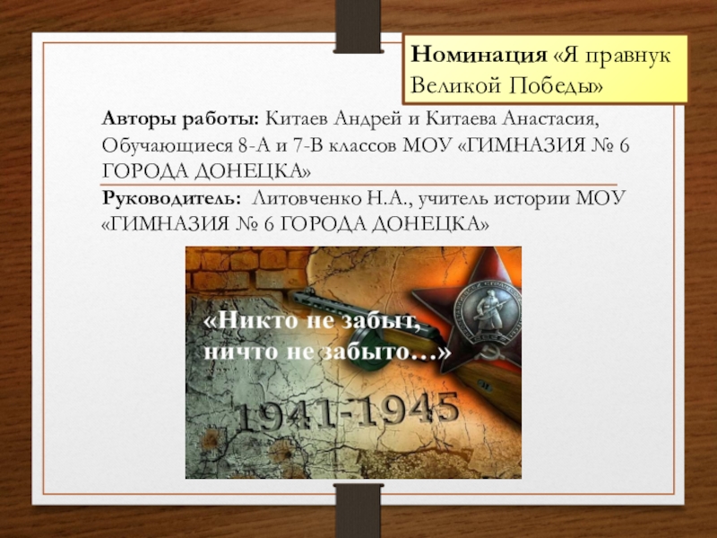 учитель истории МОУ «ГИМНАЗИЯ № 6 ГОРОДА ДОНЕЦКА»