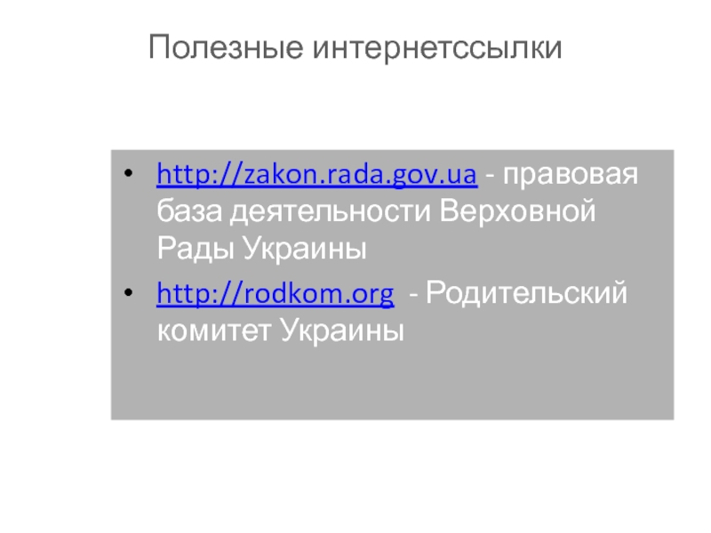 http://zakon.rada.gov.ua - правовая база деятельности Верховной Рады Украины